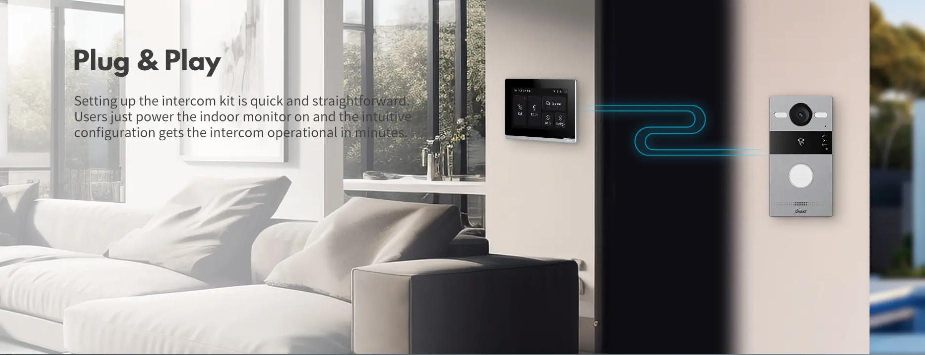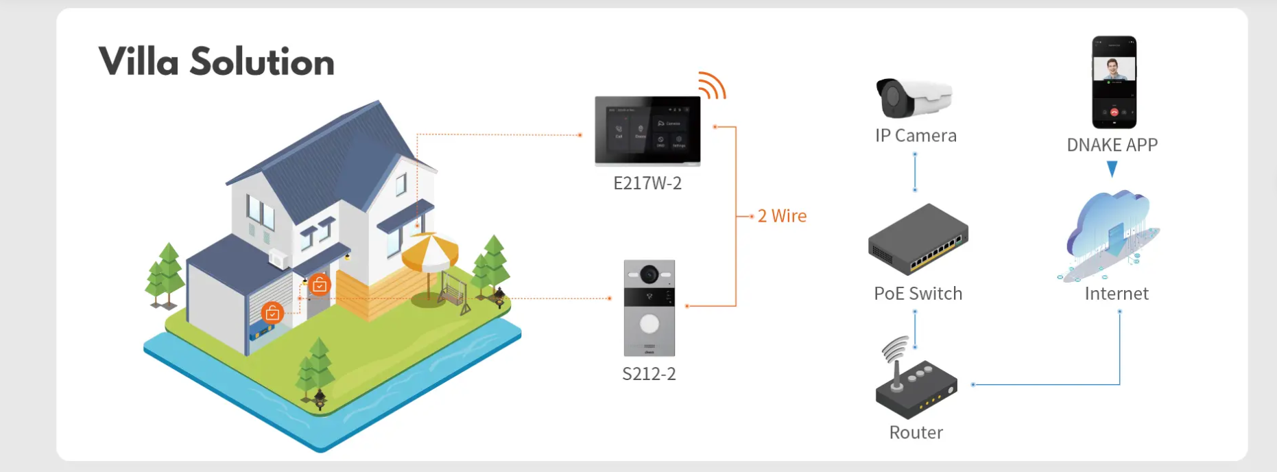 Võta turvalisus kasutusele lihtsa puudutusega. DNAKE 2-juhtmeline intercomi komplekt on terviklahendus, mis sisaldab video fonolukku, sisepaneeli ja paigaldustarvikuid. Uus 2-juhtmeline intercomi komplekt on koheselt kasutusvalmis. Tõsta oma kodu turvalisust ja suurenda mugavust DNAKE 2-juhtmelise intercomi komplektiga!