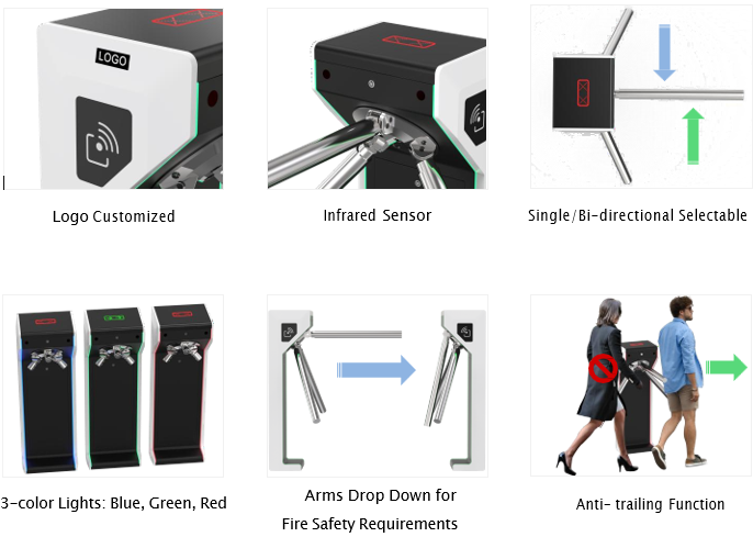 • Kahe inimese samaaegse sisenemise vastane funktsioon (anti-tailing): korraga saab läbida ainult üks inimene.
