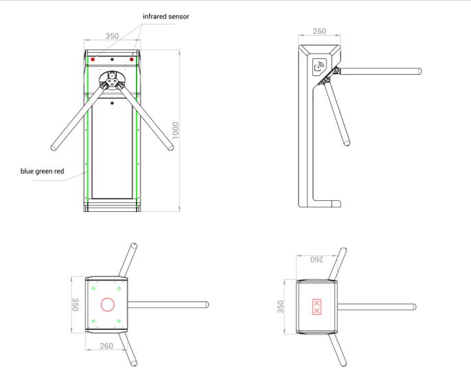 • Sinised, rohelised ja punased LED-indikaatorid näitavad läbipääsu olekut.