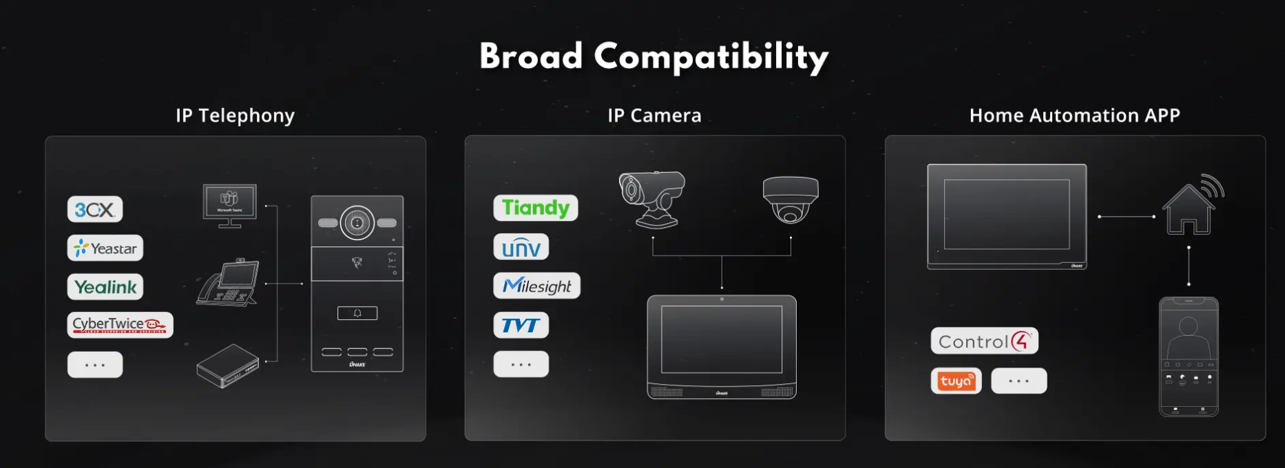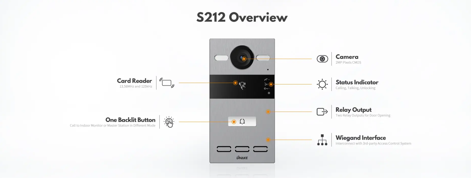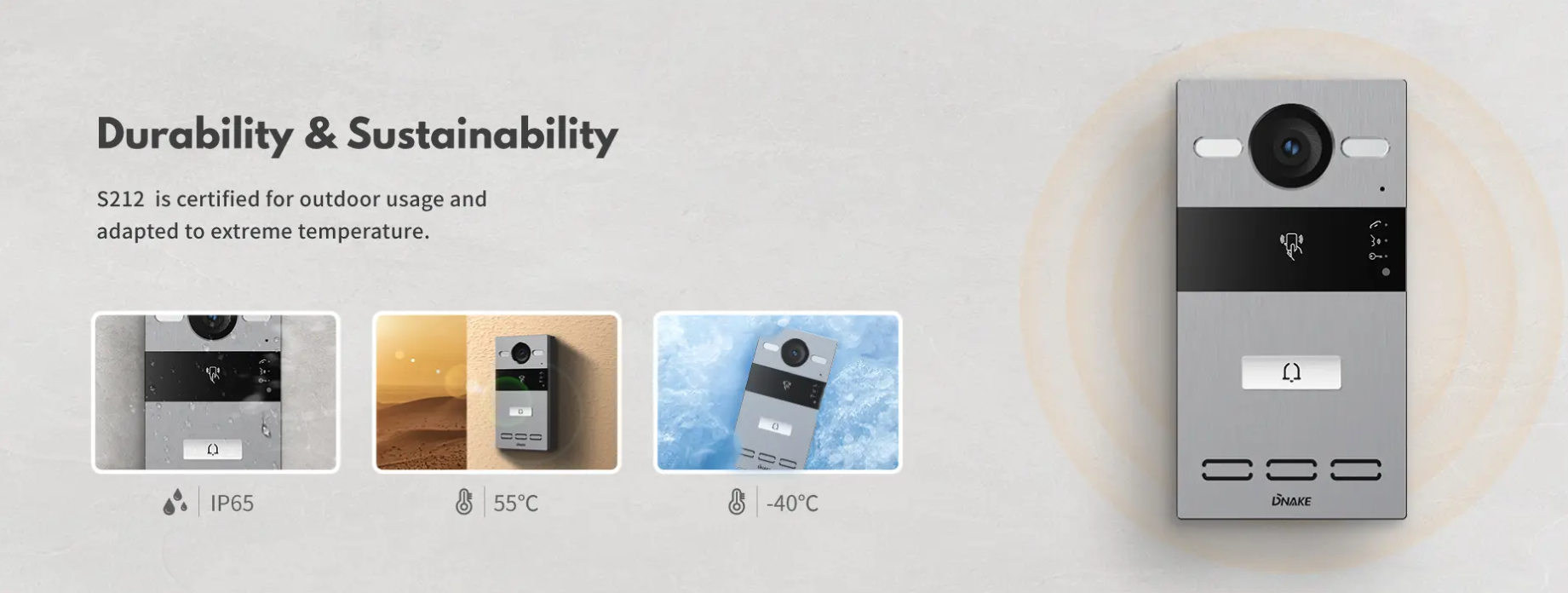 DNAKE S212 võimaldab suhelda hoone sissepääsuga videokõne teel ning avada ukse mugavalt eemalt – kas sisemonitorilt või mobiilirakendusest.. Samuti võimaldab see lihtsat integreerimist teiste SIP-seadmetega.