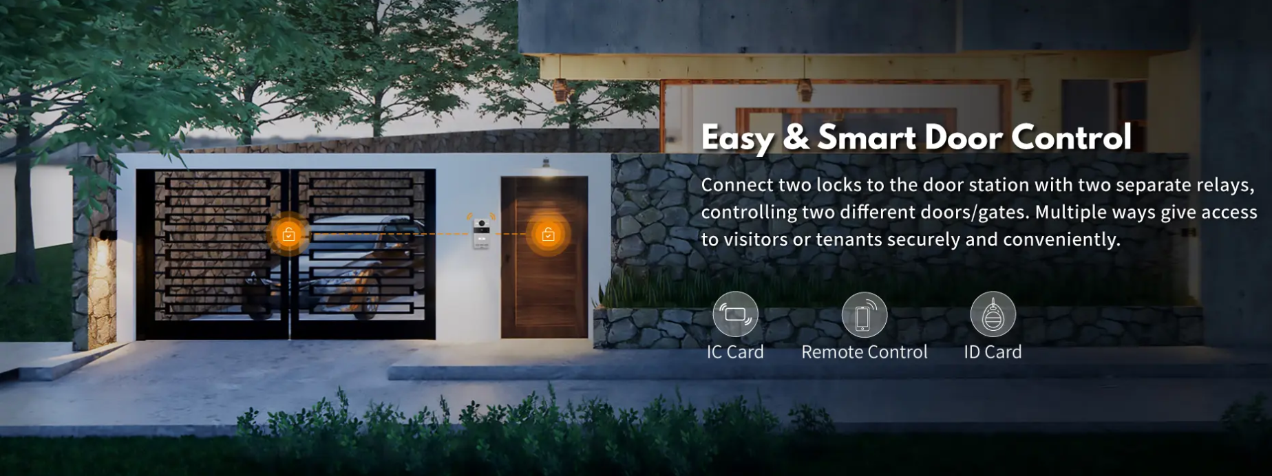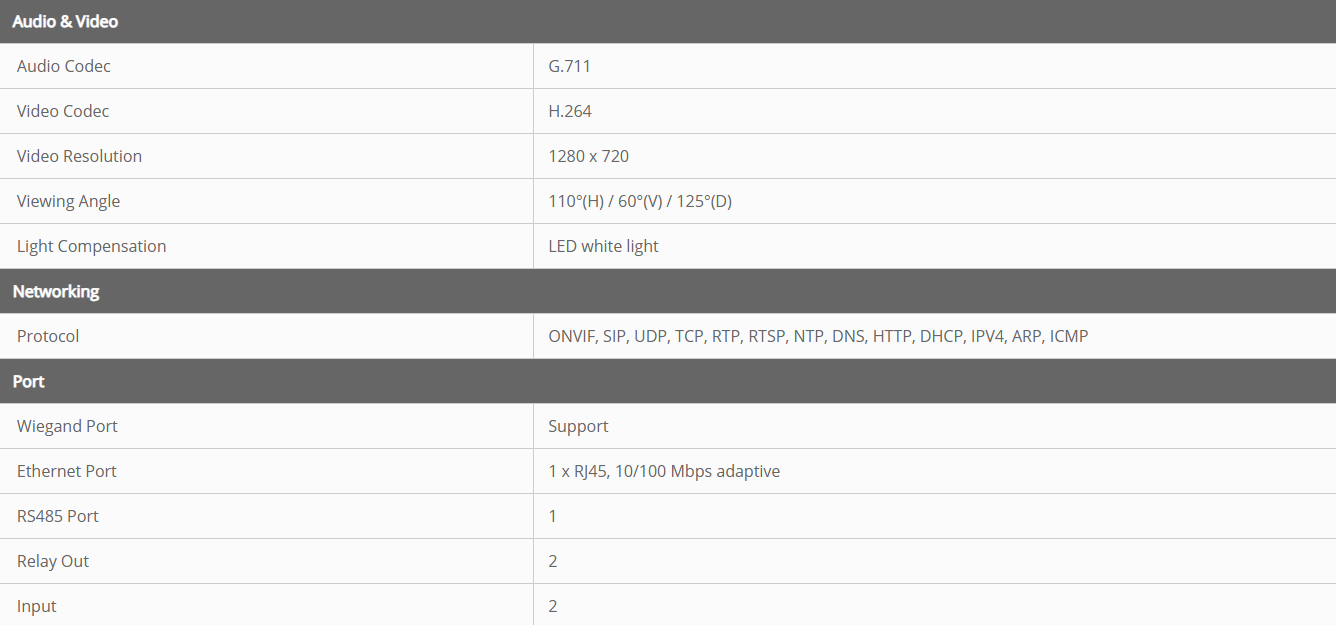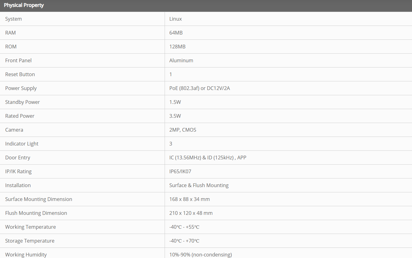 • Uksest sisenemise viisid: kõne, IC-kaart (13,56 MHz), ID-kaart (125 kHz), rakendus