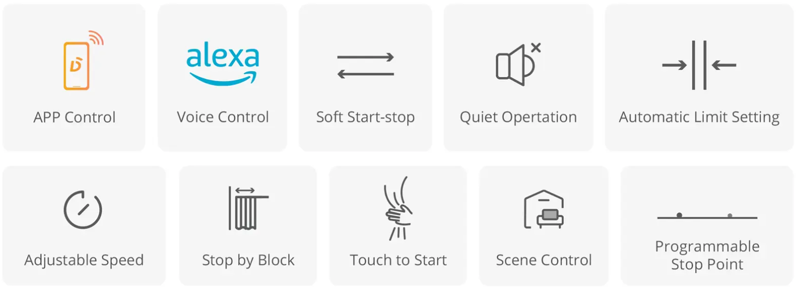 Kardinamootoril on sujuva käivituse ja seiskamise funktsioon, käsitsi aktiveerimise võimalus, automaatne peatumine takistuse korral ning käsitsi kasutamise võimalus voolukatkestuse ajal.