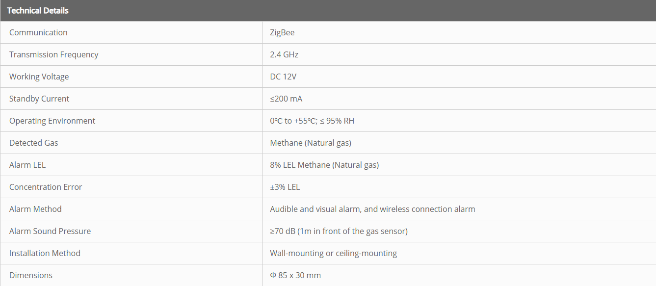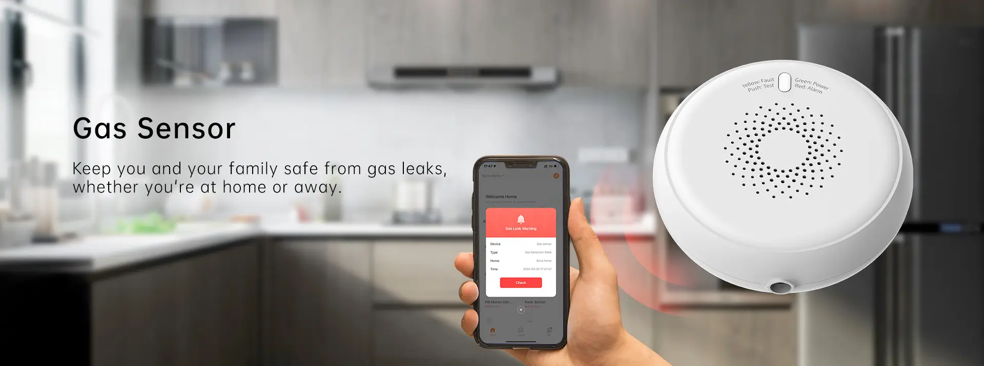 • Tuvastab gaasilekke ning saadab kohese teavituse nutikale juhtpaneelile ja Smart Life rakendusse kiireks reageerimiseks