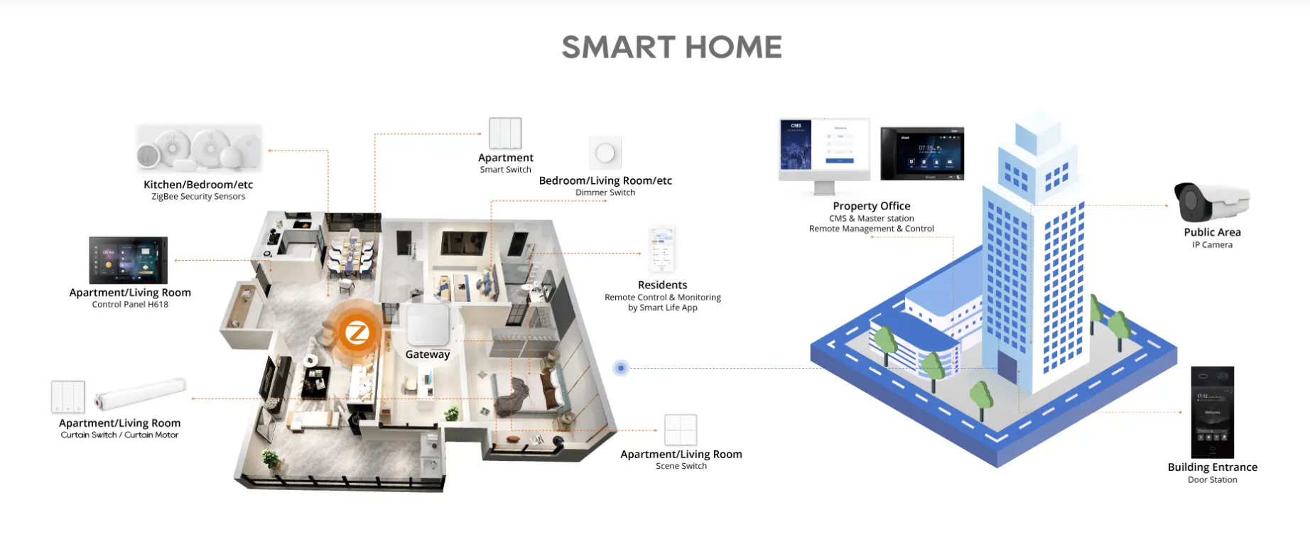 Nutikas lüüs on nutikodu juhtimiskeskus. See toetab standardset ZigBee 3.0 protokolli, mis võimaldab sujuvalt ühendada erinevaid juhtmevabu lisaseadmeid DNAKE Smart Life rakenduse kaudu, sealhulgas suitsuandureid, temperatuuri- ja niiskusandureid, ukse- ja aknaandureid, liikumisandureid, veelekkeandureid, gaasiandureid ning nutinuppe jne.