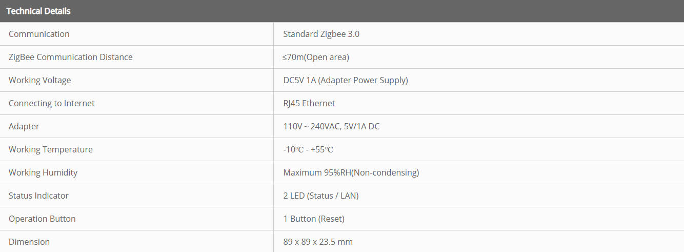 • Kasutab standardset ZigBee 3.0 ja Etherneti protokolli