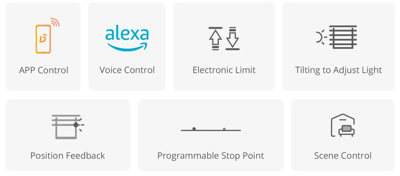 Kardinatoru mootor paigaldatakse otse rulltoru sisse, pakkudes kompaktset ja ruumisäästlikku lahendust. See toetab erinevaid juhtimisviise, sealhulgas kaugjuhtimispulti ja mobiilirakendust.