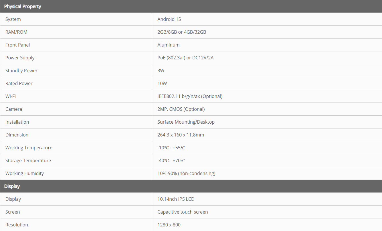 • 10,1” IPS mahtuvuslik puuteekraan, 1280 × 800