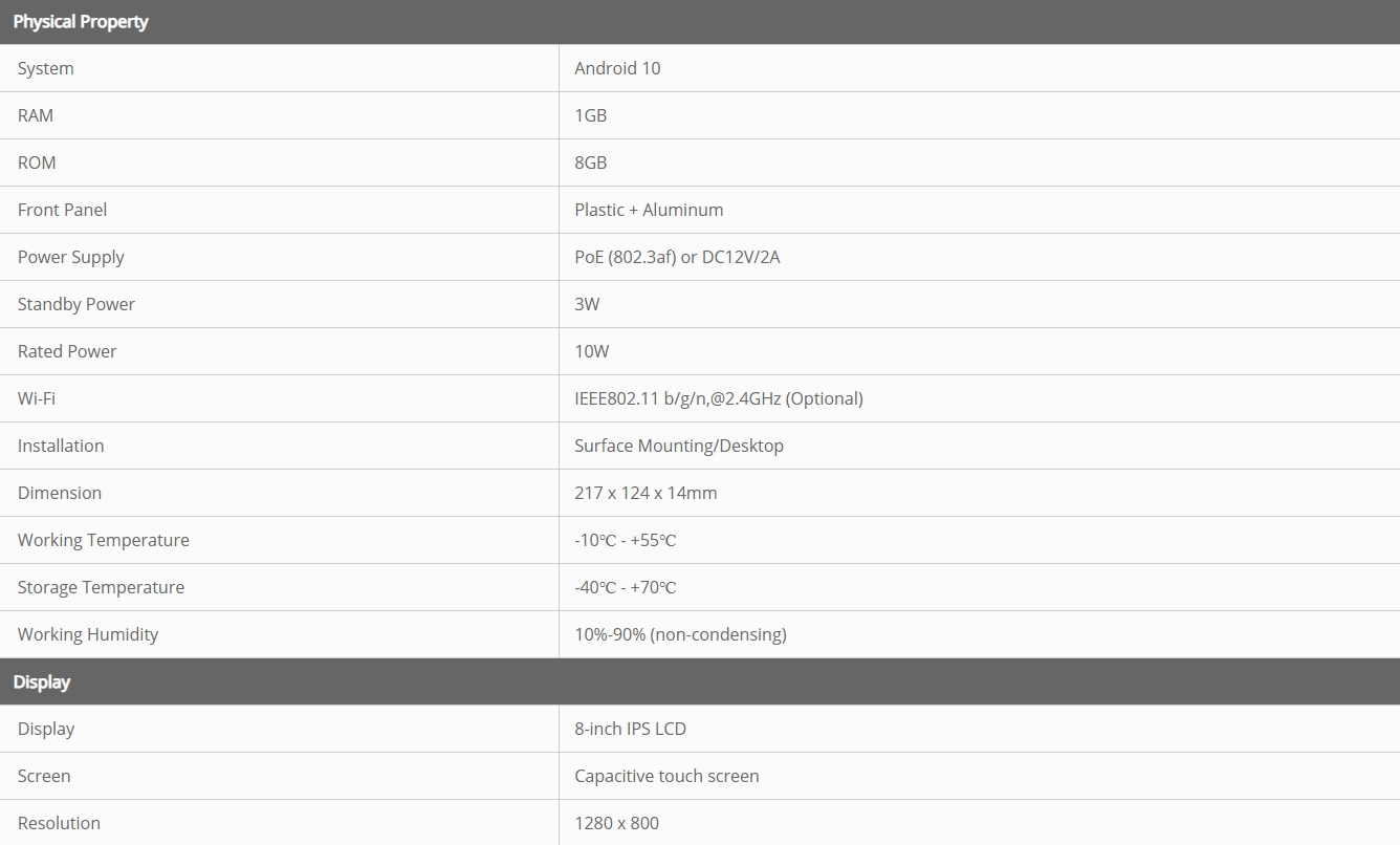 • 8” IPS mahtuvuslik puuteekraan, 1280 × 800