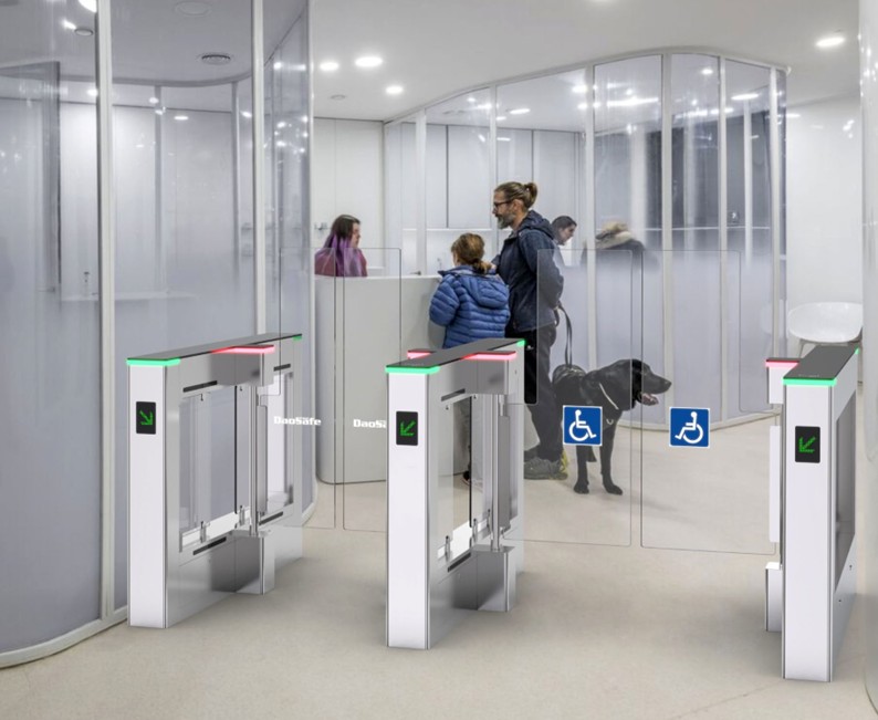 Speed gate DS6000 on väga vastupidav ning sellel on traditsiooniline roostevabast terasest korpus musta ülaosa ja kolmvärvilise LED-valgustusega, mis muudab selle teistest eristuvaks. See on mõeldud jalakäijate sissepääsu või väljumise kontrollimiseks piiratud aladel ning seda kasutatakse tavaliselt suure liiklusega kohtades kahepoolse liikumisega. Lai läbipääs toetab 600–1140 mm laiuseid avasid, võimaldades läbida nii ratastoolidel kui ka suure pagasiga jalakäijatel. Klaasi kõrgust saab pikendada kuni 1800 mm.