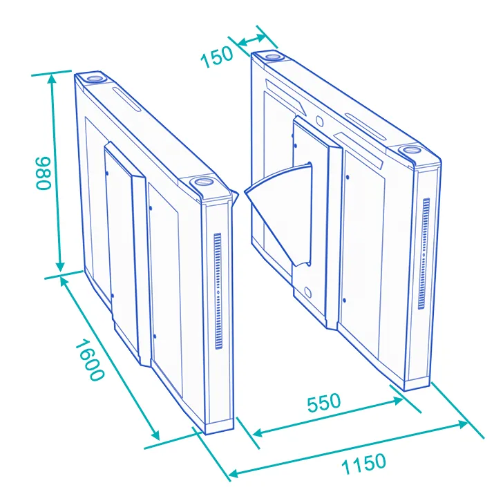 • Saadaval on standardne 550 mm läbimislaius ja 1100 mm invatüüpi lai avamislaius, mis võimaldab läbipääsu ratastoolidele ja suure pagasiga jalakäijatele.