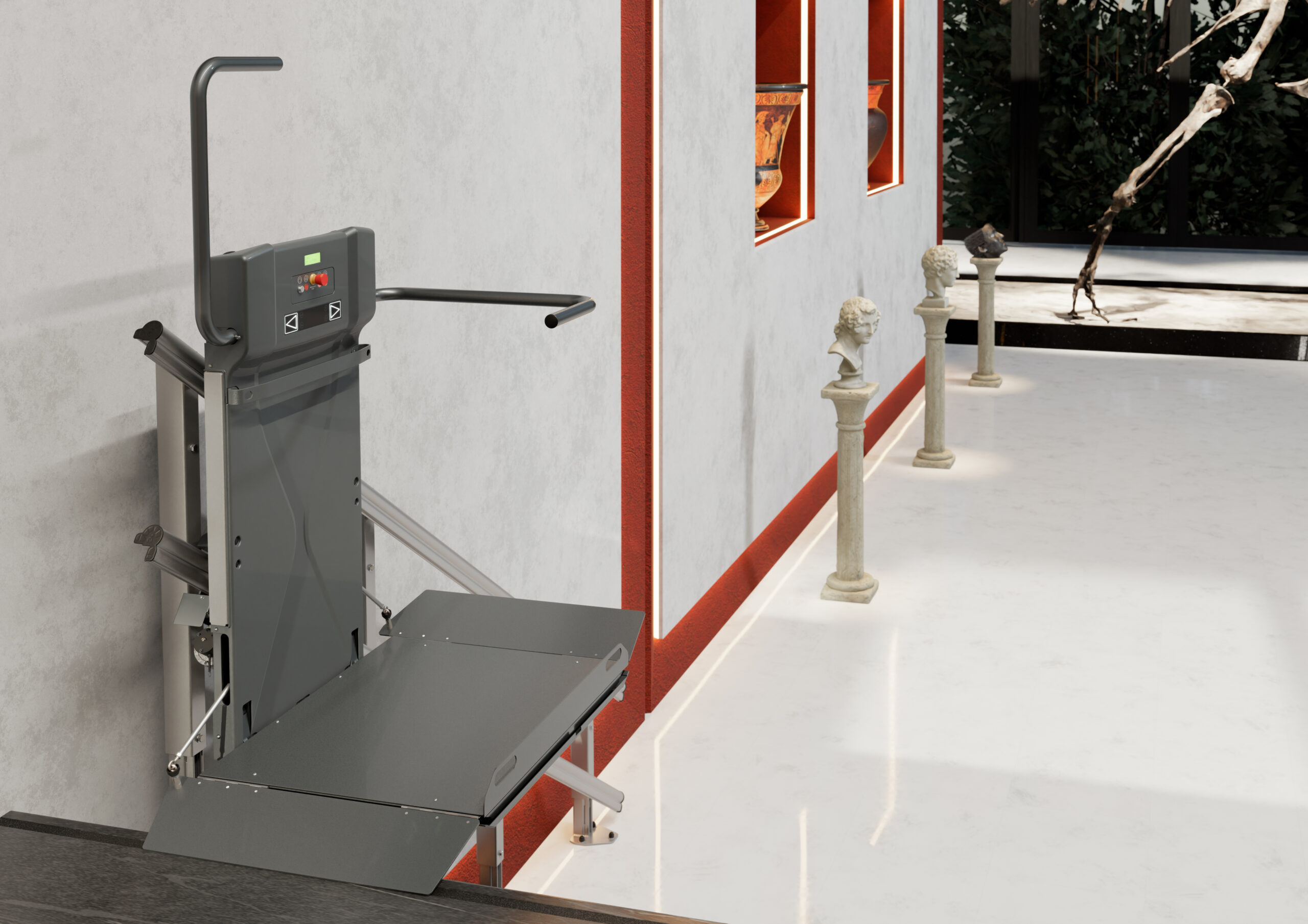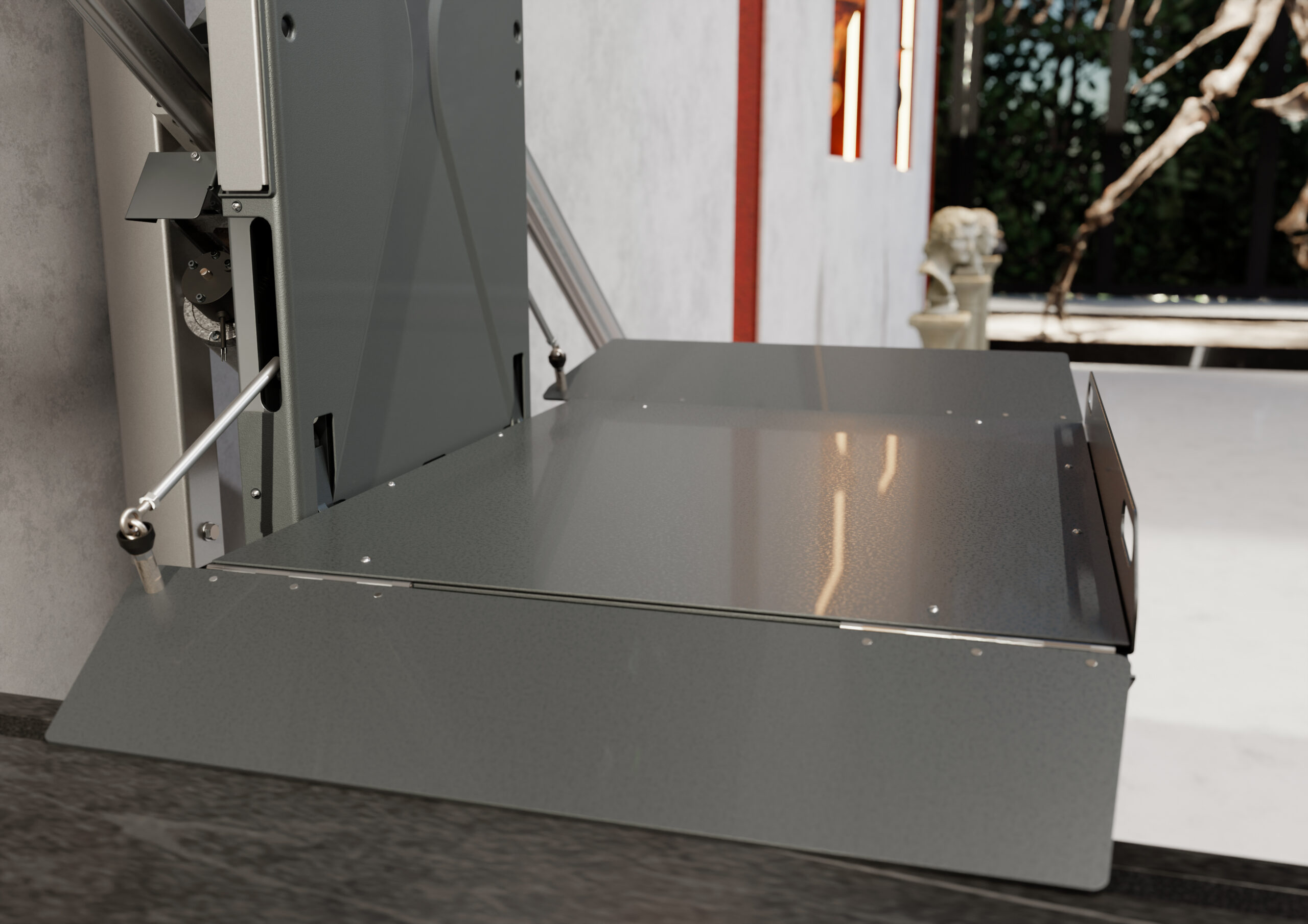 Platvorm ja kaitsepiirded avanevad ja sulguvad automaatselt, pakkudes lihtsat ja turvalist kasutamist ilma füüsilise pingutuseta.