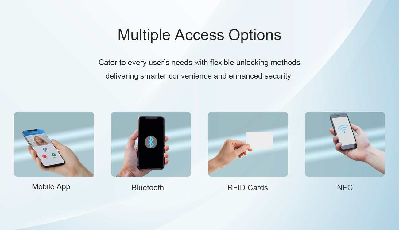 See komplekt sisaldab sisepaneeli JSL-05W ning välispaneeli JSL-15. Avaneb nii koodi, RFID, kui ka mobiilirakendusega.