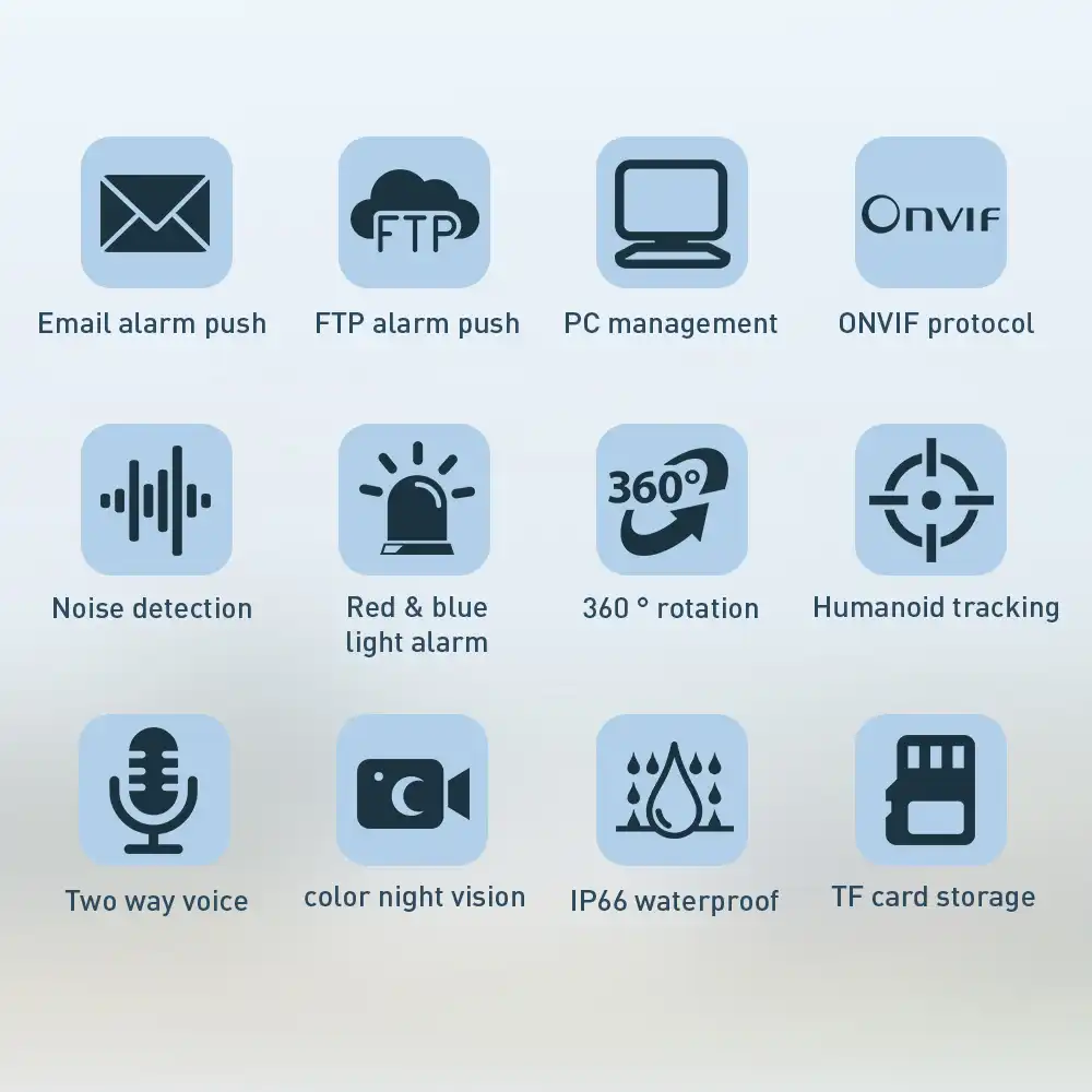 • Kahe valgusallikaga disain: täisvärviline öörežiim kuni 50 m, infrapuna öönägemine kuni 150 m
