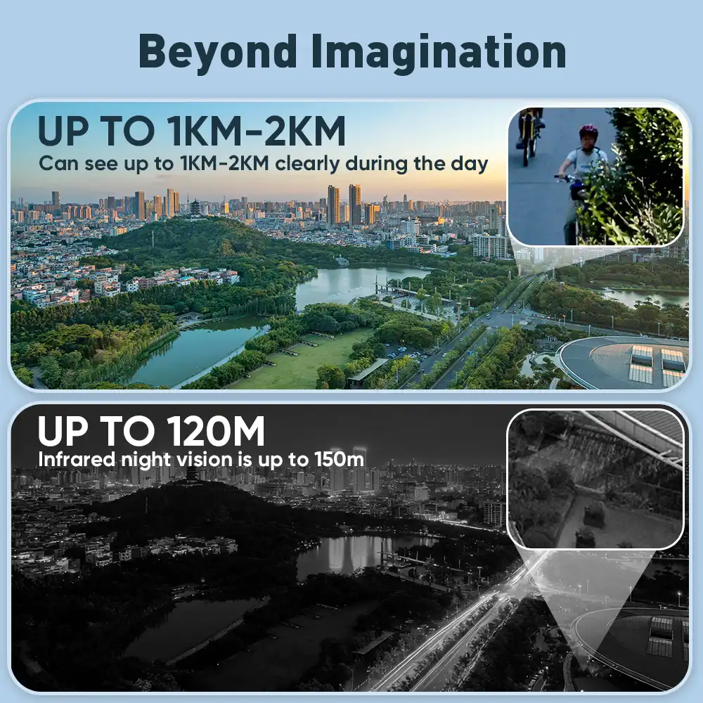 5. 50X zoom lens, the maximum daytime viewing distance of 1000- 2000 meters;
