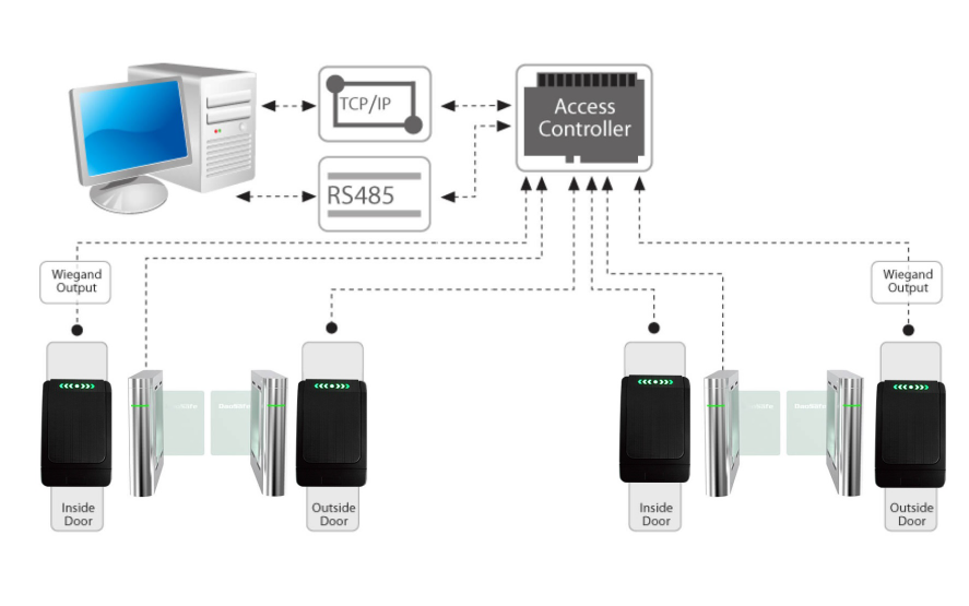 See NFC-lugeja on peamine väliste Wiegand lugejate lisaseade kõigile Daosafe läbipääsukontrolli seadmetele. Elegantse ja vastupidava disainiga seadet on lihtne ühendada ja paigaldada ning see võimaldab juhtida ühte ust mõlemalt poolt. LED-tuled näitavad lubatud või keelatud ligipääsu. Lugemiskaugus on kuni 10 cm. Kuna see seeria on veekindel ning töötemperatuur jääb vahemikku -25 ºC kuni +75 ºC, on see sobilik lahendus ka välitingimustes paigaldamiseks.