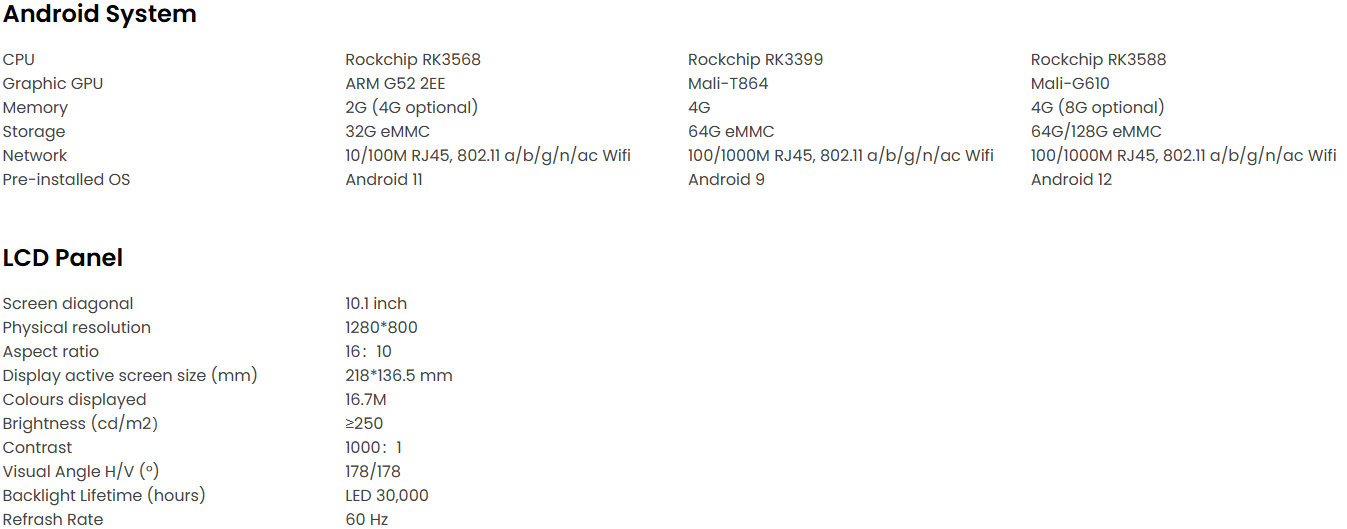• 10.1″ mahtuvuslik puuteekraan, 7H löögikindel klaas, 10-punktiline puute tugi, kohandatav vastavalt vajadusele