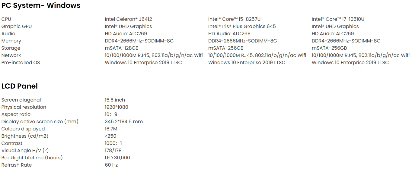 • 15.6″ mahtuvuslik puuteekraan, 7H löögikindel klaas, 10-punktiline puute tugi, kohandatav vastavalt vajadusele