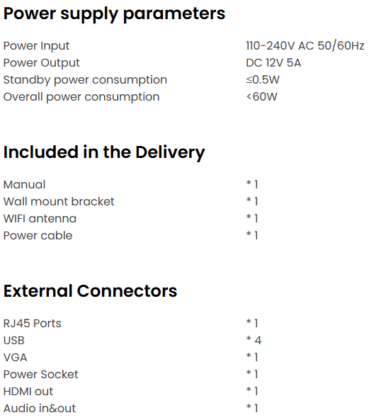 • Paigaldusvõimalused: seinale, lauajalale või sisse ehitatuna