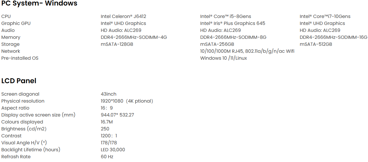 Füüsiline resolutsioon: 1920 × 1080 (4K valikuline)