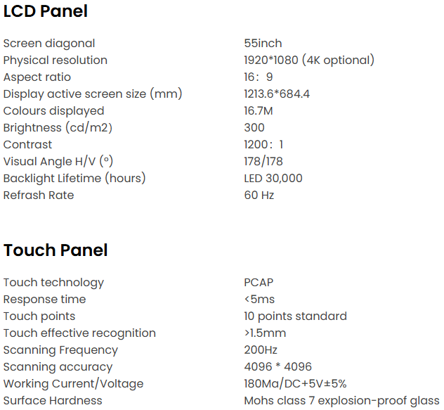 Füüsiline resolutsioon: 1920 × 1080 (4K valikuline)